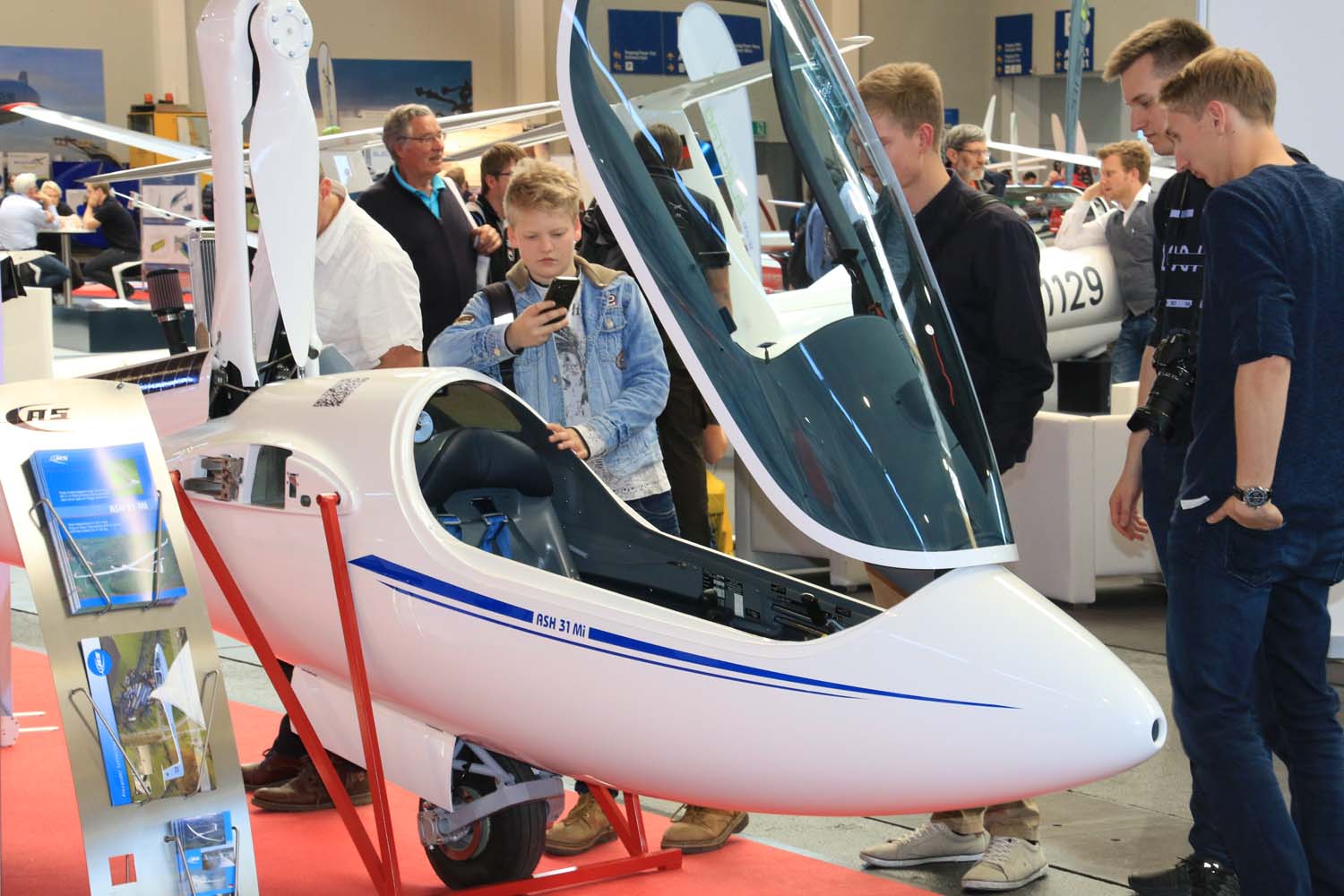 Wankel self-launcher in the ASH 31 Mi and ASG 32 Mi, two-stroke sustainer in the ASG 29 Es and electric sustainer in the ASG 32 EI – visitors were able to obtain detailed information about all three Schleicher-built propulsion systems and to try out their respective operating concepts.