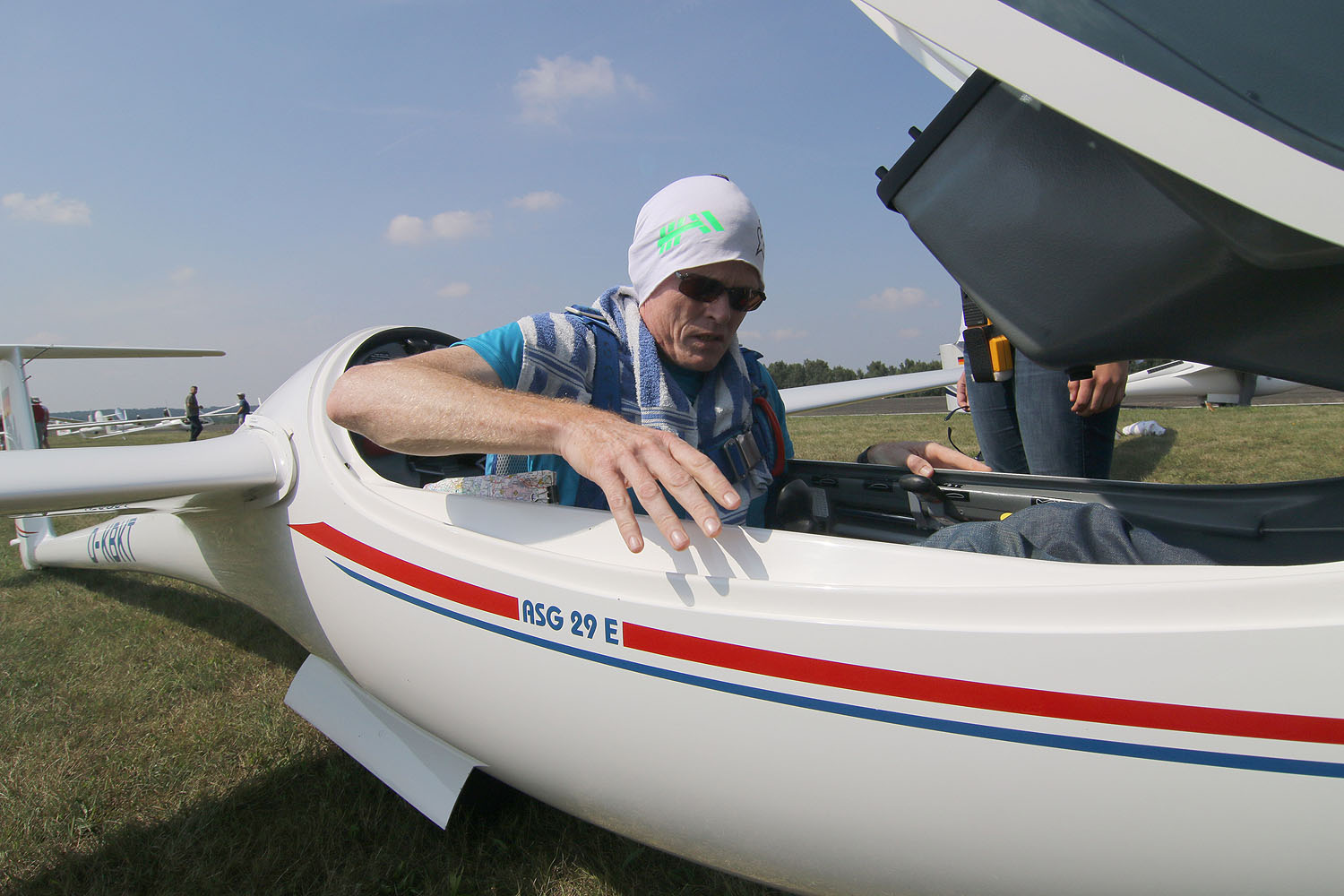 In der 18m-Klasse sah es recht bald so aus, als würden die ASG 29-Piloten den Sieg unter sich ausmachen. Zum Schluss hatte Mario Kießling (ASG 29 E) die Nase vorn. Trotz Tagessieg am letzten Wertungstag fehlte Matthias Sturm (ASG 29) am Ende nur ein Punkt zum Sieg, er wurde Vizemeister, gefolgt von Michael Streit (ASG 29 E) und dem schwedischen Gastpiloten Markus Ganev (ASG 29 E) auf dem vierten Platz. Sebastian Huhmann, Claus Triebel, Andreas Kessler, Sikko Vermeer (NL), Michael Petzold und Tomasz Dul komplettierten das Feld und sorgten dafür, dass die ersten zehn Plätze an ASG 29-Piloten gingen.